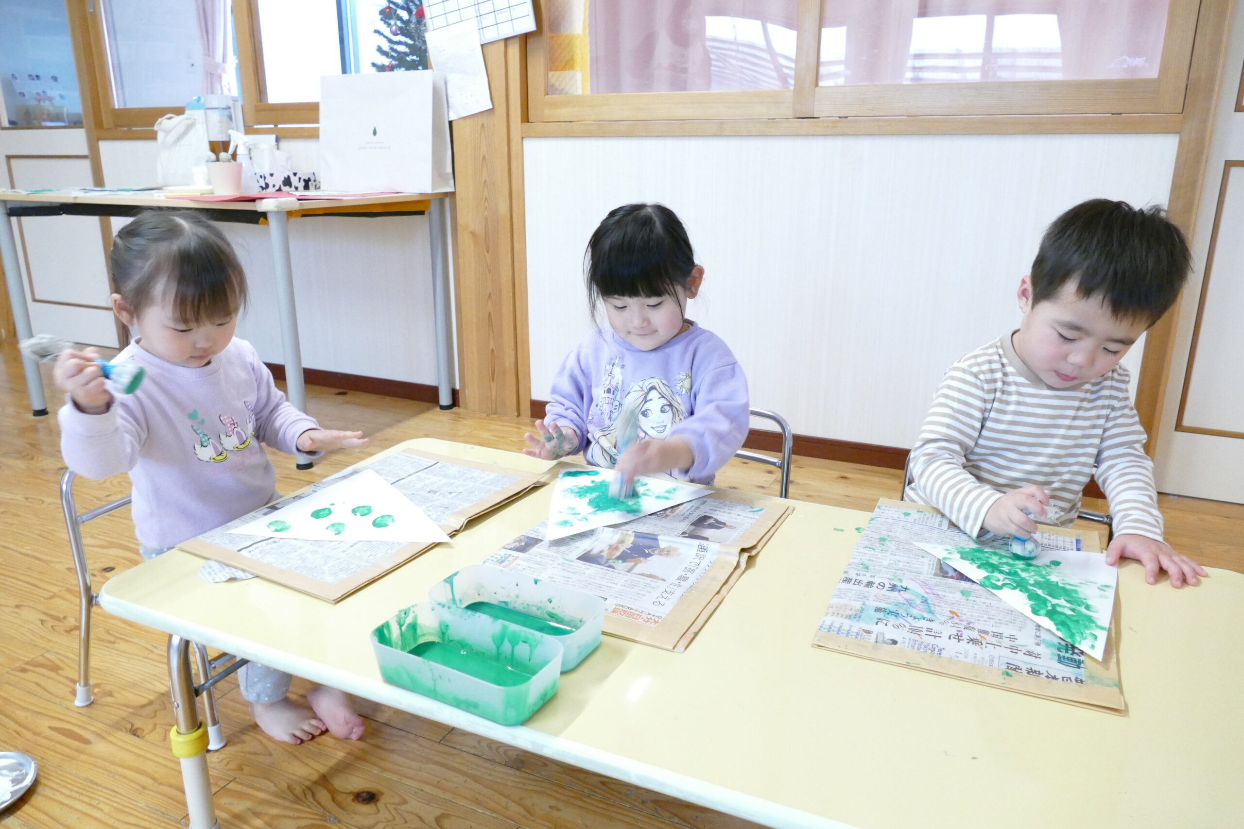 ≪ちゅうりっぷ組≫ クリスマスツリーの製作をしたよ(^▽^)/ まずは絵の具でポンポンポン(^^♪ 次は指でポンポン(^^♪ かわいいクリスマスツリー🎄のかんせーい(^^♪ ≪すみれ組≫ クリスマス飾りを作ったよ(^▽^)/ ペタペタ!シール貼りに挑戦(^^♪ かわいいクリスマス飾りのかんせーい(^…