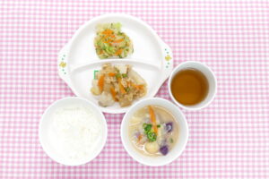 2025.11.4 写真 ≪お昼ごはん≫ 大根と里芋のそぼろ煮 きゃべつのごま酢和え さつま芋のみそ汁 ごはん ≪おやつ≫ ツナパン 牛乳 前の記事2025.10.31 写真次の記事 2025.11.5★芋ほり