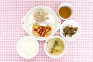 2025.12.23 写真 ≪お昼ごはん≫ 豚肉のピカタ 納豆サラダ そうめん汁 昆布とかつお節のつくだ煮 ごはん ≪おやつ≫ きな粉蒸しパン 牛乳 前の記事2025.12.22 写真次の記事 2025.12.24★クリスマス・誕生会