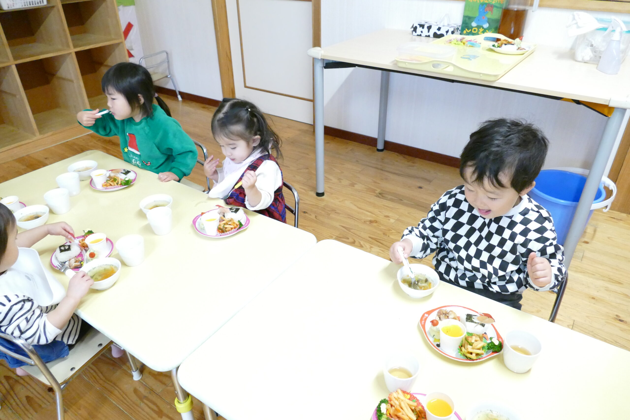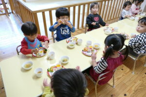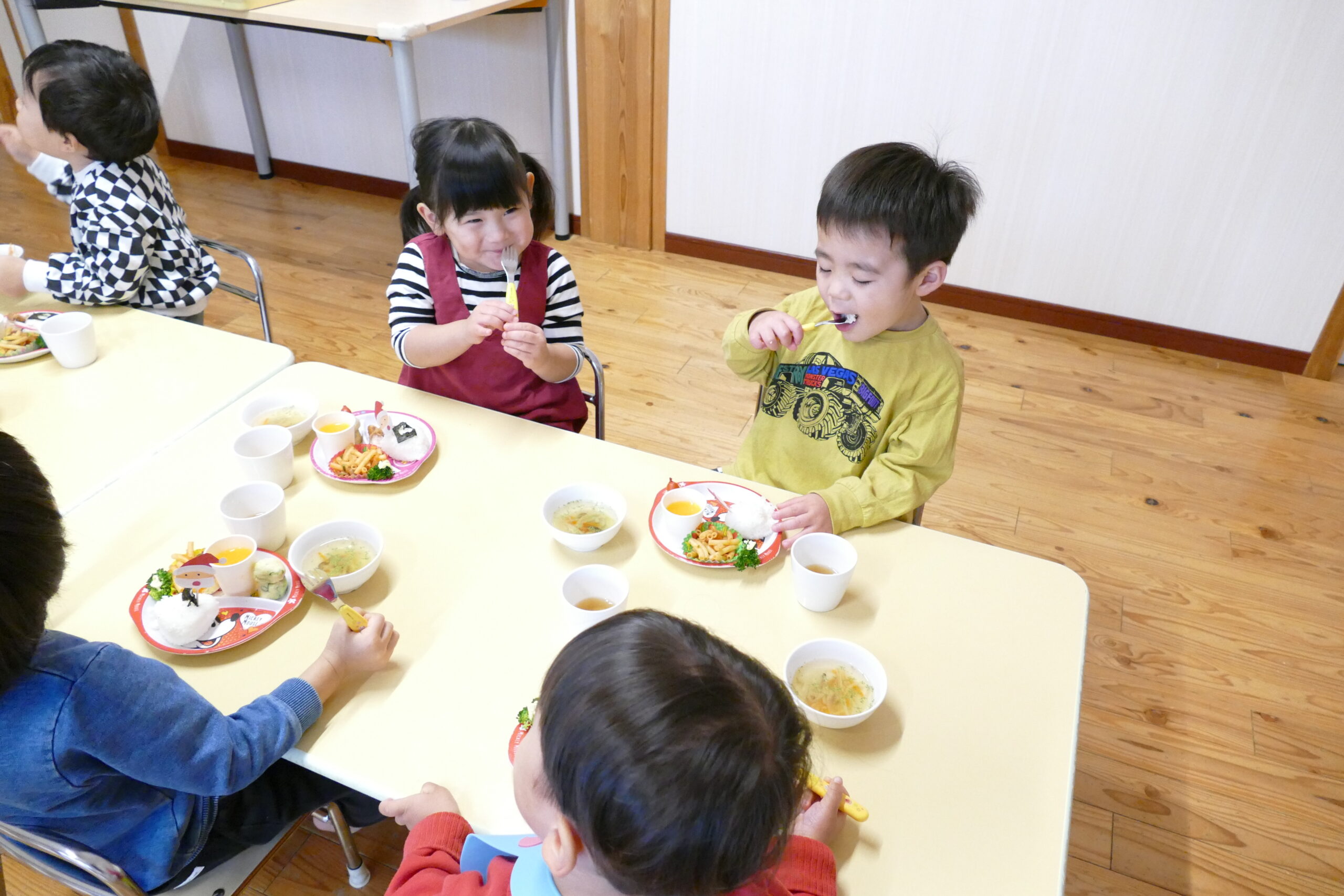 給食の先生がクリスマス・誕生会ランチを作ってくれたよ(^▽^)/