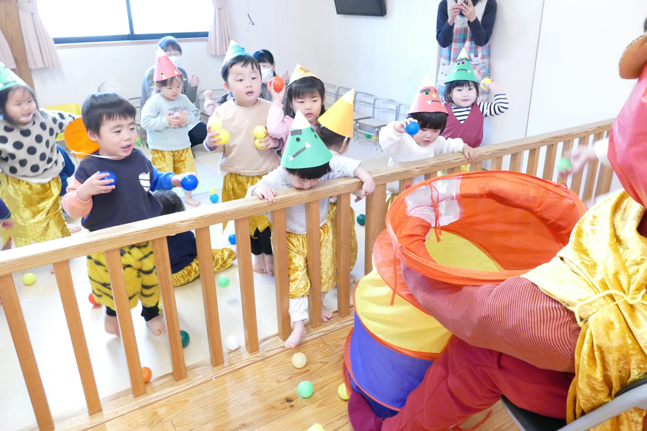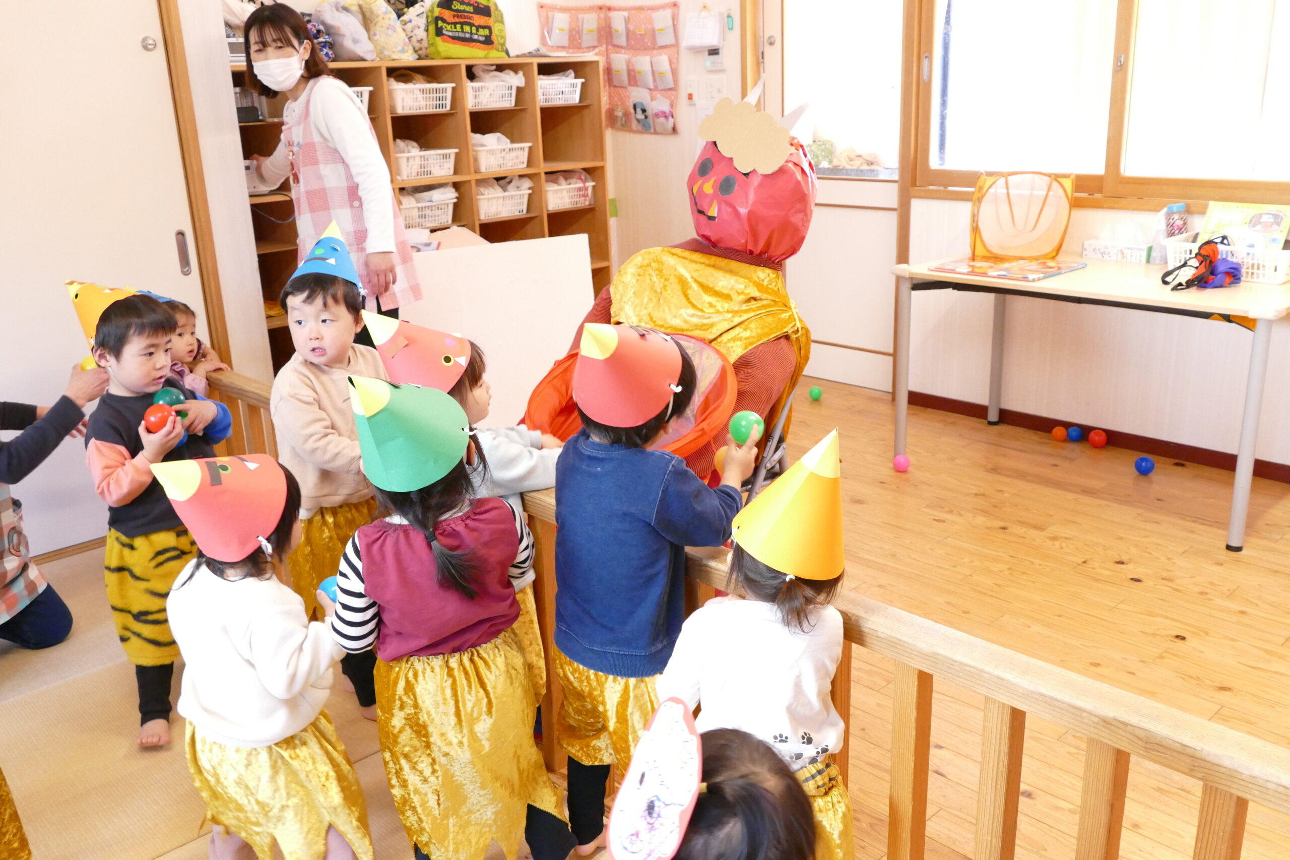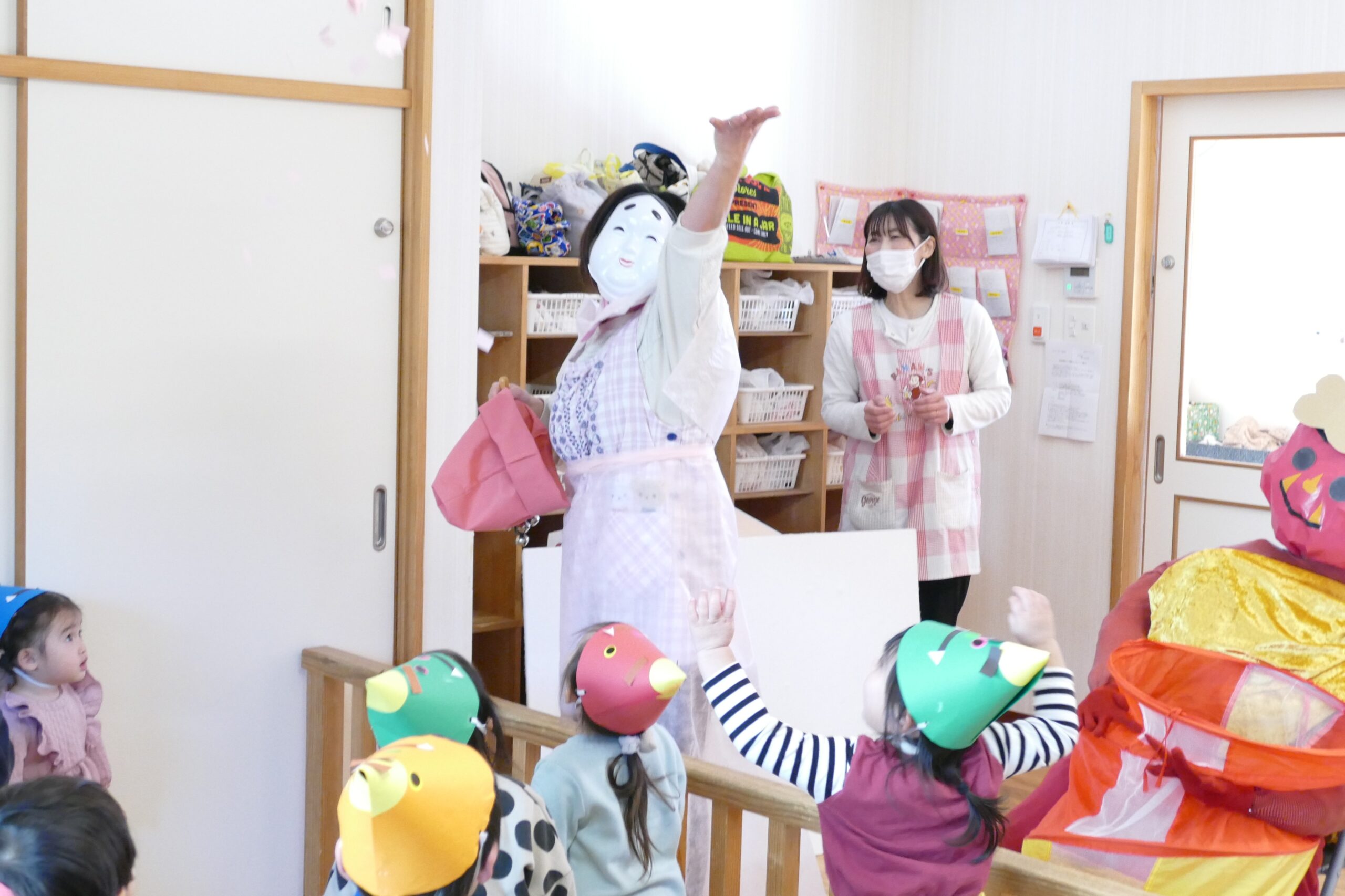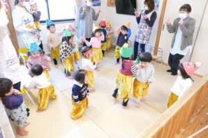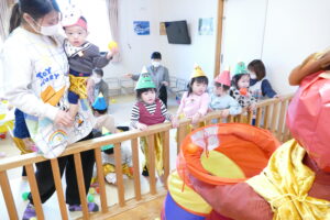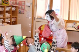 2026.2.3★豆まき・誕生会 豆まき・誕生会を行いました(^▽^)/ 先生が節分のお話をしてくれたよ(^▽^)/ 鬼のパンツはいいパンツ♪強いぞー(^^♪ 人の心の中にはイヤイヤ鬼、怒りんぼう鬼、色んな鬼さんがいるようです👹 よーし!鬼退治だー(^▽^)/ 今年も鬼太くん登場(^▽^)/ 鬼はそとー!! 最後に福の神がみんなに幸せを運んできてくれました(^▽^)/ ★そして今月のお誕生会です(^▽^)/★ みんなでハッピーバースデートゥーユー歌うよ(^^♪ 給食の先生が節分・誕生会ランチを作ってくれたよ(^▽^)/ 前の記事2026.2.2 写真次の記事 2026.2.3 節分・誕生会ランチ