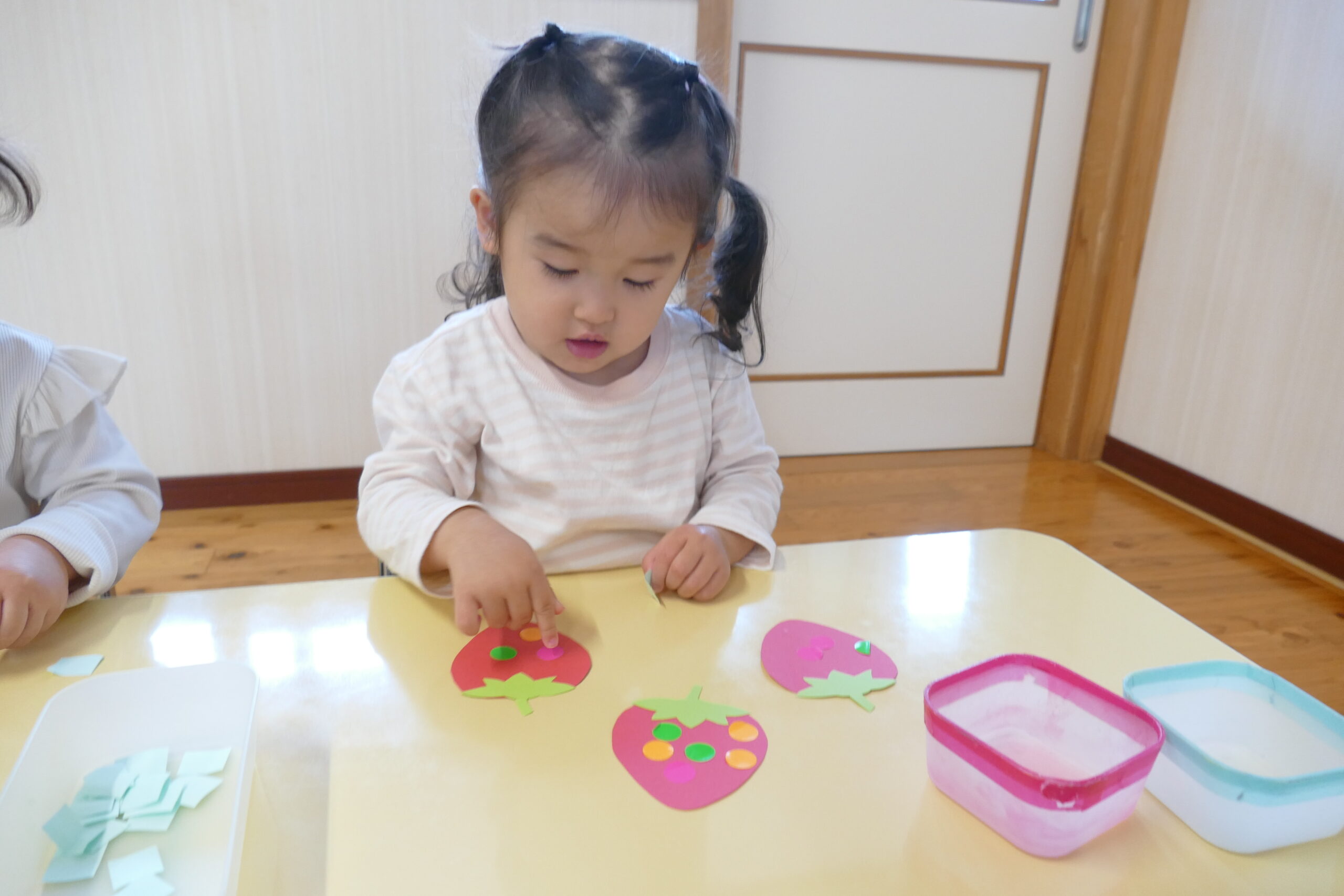 2026.4.23★苺の製作・収穫/公園で遊んだよ ≪ちゅうりっぷ組≫ いちご🍓の製作をしたよ(^▽^)/ ペタペタ シール貼りから(^▽^)/ そして苺をカゴの中へ!ペタッ(^^♪ かわいい苺🍓がたくさん出来ました(^^♪ ≪すみれ組≫ 近くの公園に遊びに行ったよ(^▽^)/ しゅっぱーつ! ★4月20日★ いちご狩り🍓をしたよ(^▽^)/ 今年もじーじが沢山の苺🍓を育ててくれました(^▽^)/ 沢山採れたよー!給食の時に食べようね(^^♪ 前の記事2026.4.23 写真次の記事 2026.4.24 写真/いちご狩り